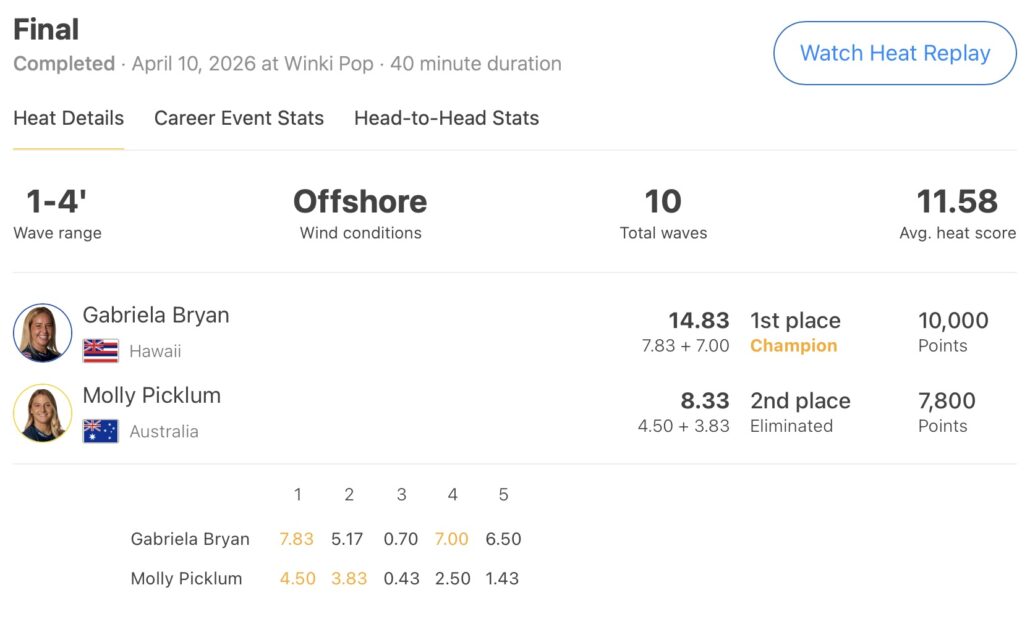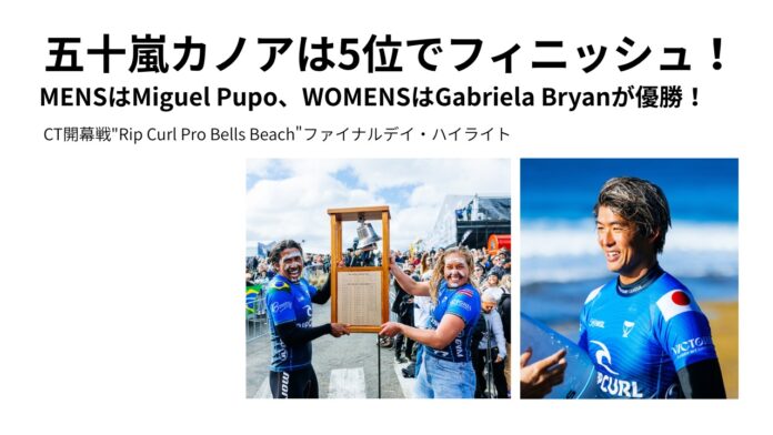 オーストラリアのウィンキーポップで開催のCT開幕戦”Rip Curl Pro Bells Beach”は、現地時間と日本時間の4/11(土)にコンテストDAY6を迎え、セットでオーバーヘッドのクリーンなオフショアの波に恵まれた中、MENSのクォーターファイナルのヒート2からMENS、WOMENS共にファイナルまでの全スケジュールを消化。