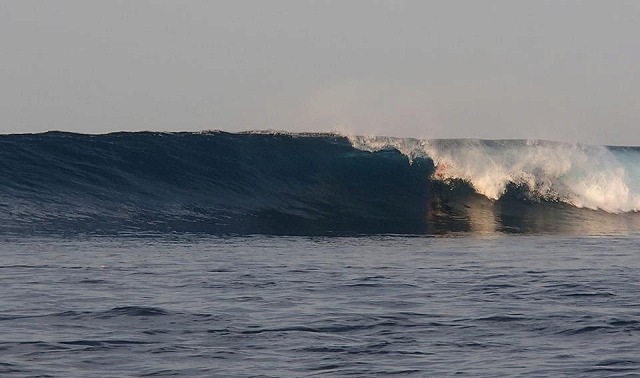 初日は小ぶりなサイズ(と、言っても頭~頭半サイズ。。)だんだん波も大きくなり、3日目にはMAXで8ftの波となりました。少し遠目のボートから見てると、形はそのままでちょっと、大きくなったかなぁー?くらいに見えるのですが、いざ、その波の割れる沖に行くと、雰囲気が全く違う事が分かります。沖からやって来る巨大なウネリが目に一杯広がり、その波が割れる時にはバリバリーーーーーっと、海の底に当るような大きな音がし、波の壁が、とてつもなく高いっ!!