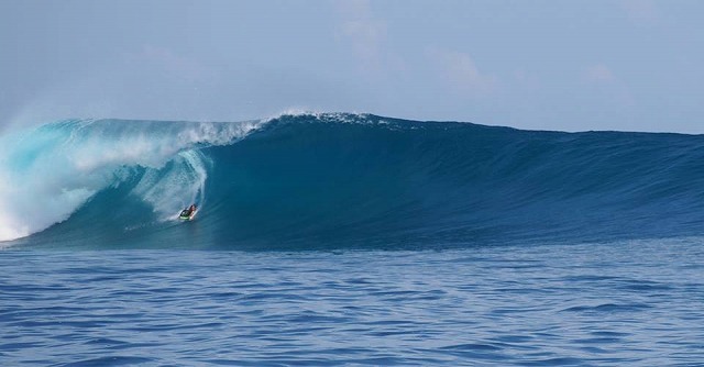 波の斜面が出来る場所まで、恐々移動し、ボードを斜面に合わせると、勢い良くボードが走り出します! その一瞬の景色は波のきれいなフェイス、島、ボート全部を見下ろせ、まさにボディボードと一体になっ