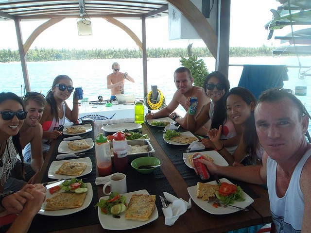 船の上では、オージーの友達やガイド、インドネシア人のクルーと一緒に生活をしていました。なので、英語とインドネシア語を交えての会話。同じ波に乗って、同じご飯を食べて、、、見るもの、感じるものが一緒だと、不思議と気持ちも伝わるんだぁ、、と思いました。
