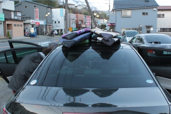 大阪ナンバーのセダンに板を4本紐でしばりつけ、一路東へと車を走らせた。。。