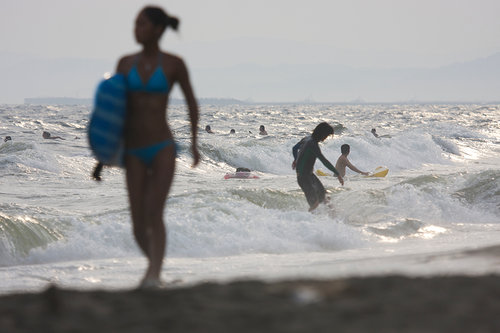 いかにもいつもの夏の湘南の夕方の風波といった感じの